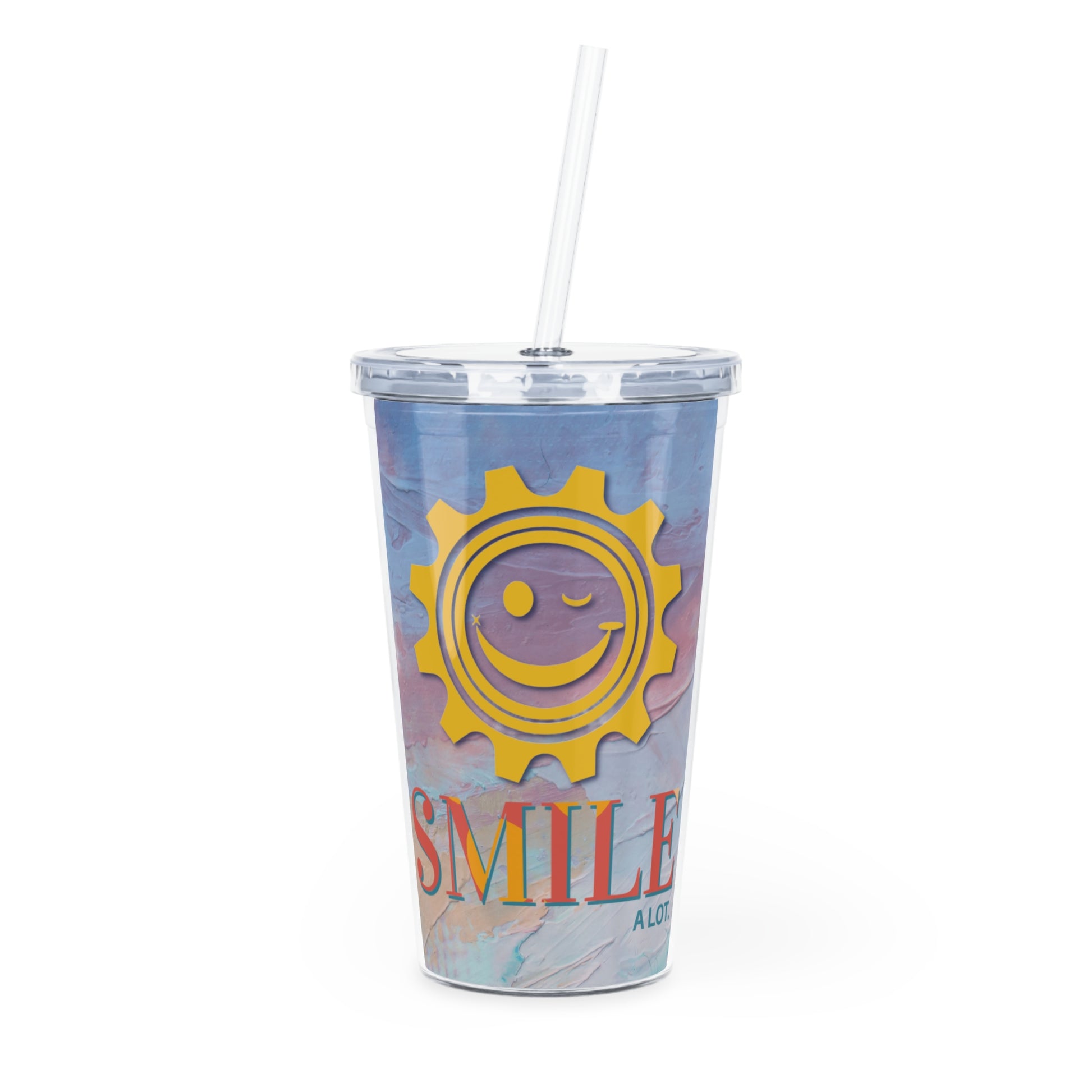 Colorful Smile Plastic 20oz Tumbler with Straw - Motivational Cup for Drinks, Summer Vibes, Gift for Friends, Reusable Travel Mug